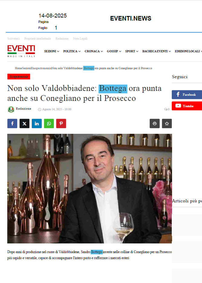 Copyright © 2018 - Bottega SPA.- All rights reserved - Export TV 002501 - R.E.A. TV n. 126054 - C.F./P.IVA e Reg. Impr. IT00541680260 - Cap. Soc. € 5.000.000,00 i.v.